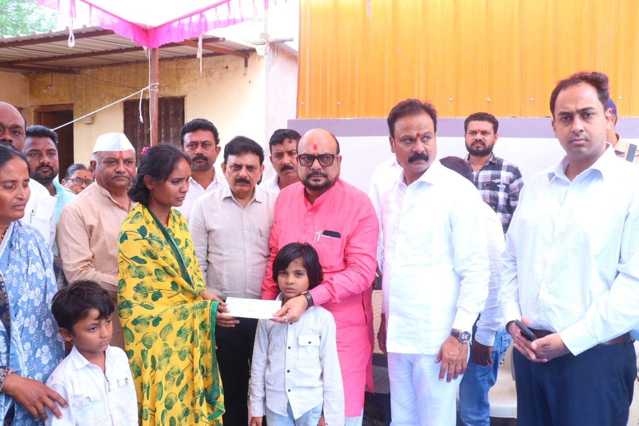 पुराच्या पाण्यात मयत झालेल्या किरण सावळे, यांच्या कुटुंबाकडे शासनातर्फे चार लाख रुपयांचा धनादेश सुपूर्त